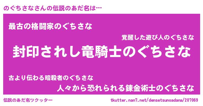 男性向けラノベタイトル風あだ名 | 『のぐちさな~年齢イコール彼女いない歴の魔法使い~』 |