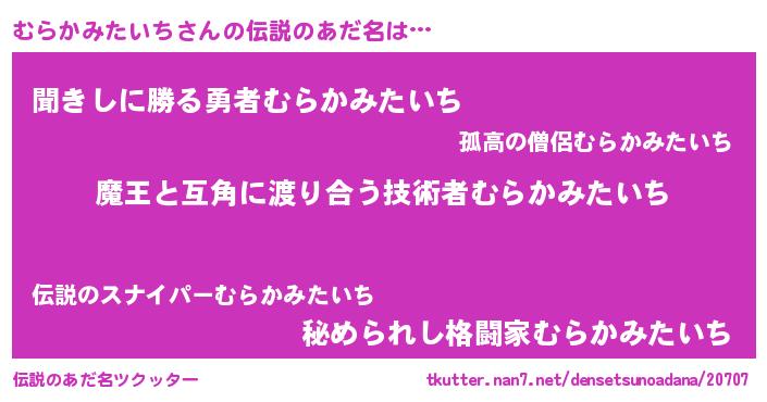 | 女子向けラノベタイトル風あだ名 | 『むらかみたいち恋絵巻』 |