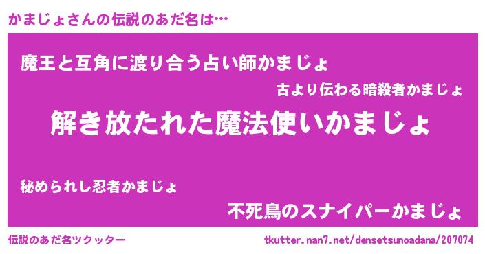 | ヒーロー風カッコイイあだ名 | 『幻影騎士カマ』『愛の使者かまじょ』 |