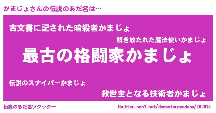 | ヒーロー風カッコイイあだ名 | 『ウルトラかまじょマン』『ネオカマジョ』 |