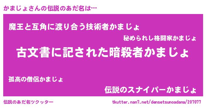 | ヒーロー風カッコイイあだ名 | 『ネオカマジョ』『友情の使者かまじょ』 |