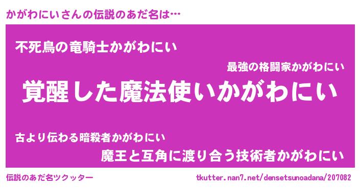 ヒーロー風カッコイイあだ名 | 『仮面カガダー』『天弓騎士カガ』 |