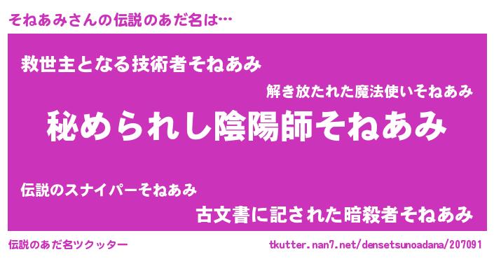 | 男性向けラノベタイトル風あだ名 | 『やはりそねあみの青春ラブコメはまちがっている 』 |