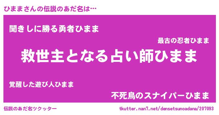 | ヒーロー風カッコイイあだ名 | 『天空の使者ひまま』『ネオヒママ』 |