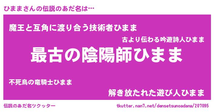 | ファンタジー風あだ名 | 『ゼヒマトゥ』『エターナルヒママー』 |