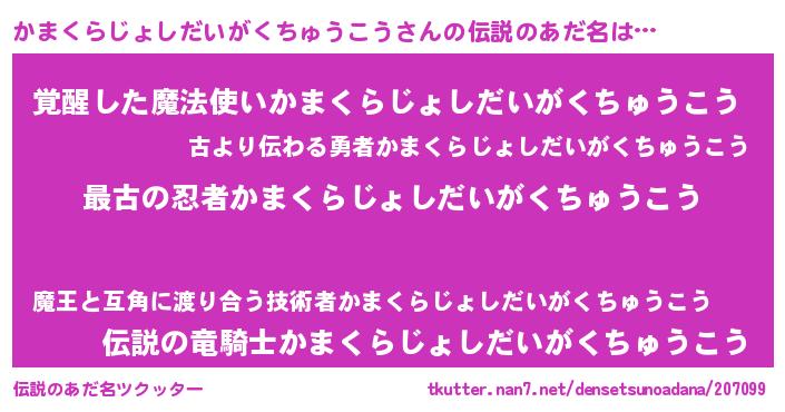 女子向けラノベタイトル風あだ名 | 『闇のかまくらじょしだいがくちゅうこう』 |