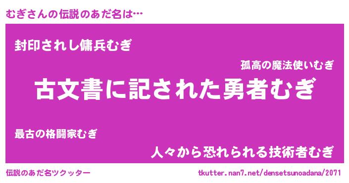 | 意味不明あだ名 | 『自称むぎ』『ヨモギ科むぎ属』 |