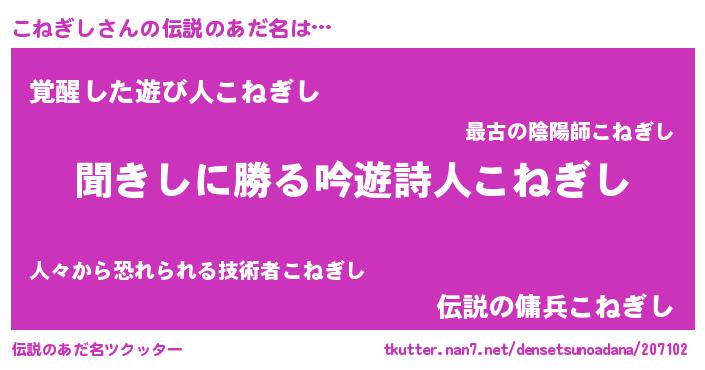 女子向けラノベタイトル風あだ名 | 『異世界で失敗しない100のこねぎし』 |