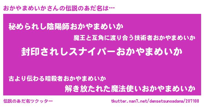 胡散臭い通販商品みたいなあだ名 | 『億万長者になれる霊験あらたかなお札…その名も「おかやまめいか」』 |