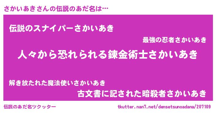 男性向けラノベタイトル風あだ名 | 『おまえをオタクにしてやるから、俺をさかいあきにしてくれ! 』 |