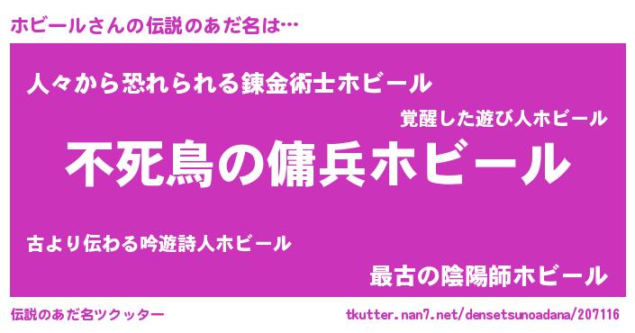 意味不明あだ名 | 『もやし科ホビール属』『自称ホビール』 |