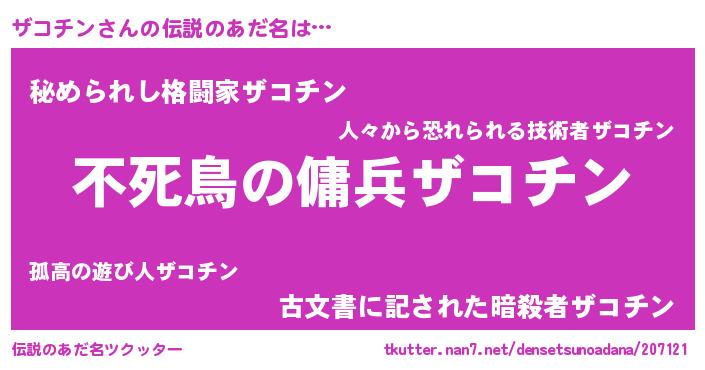 意味不明あだ名 | 『なめこ科ザコチン属』『自称ザコチン』 |