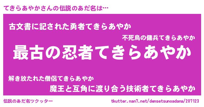 ヒーロー風カッコイイあだ名 | 『ウルトラてきらあやかマン』 |
