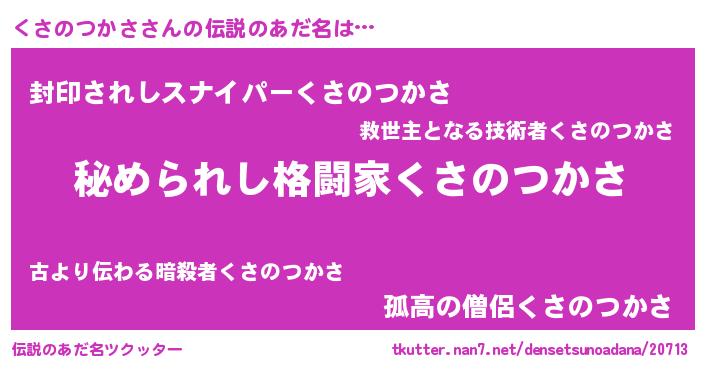| 意味不明あだ名 | 『くさのつかさフォーエバー』 |