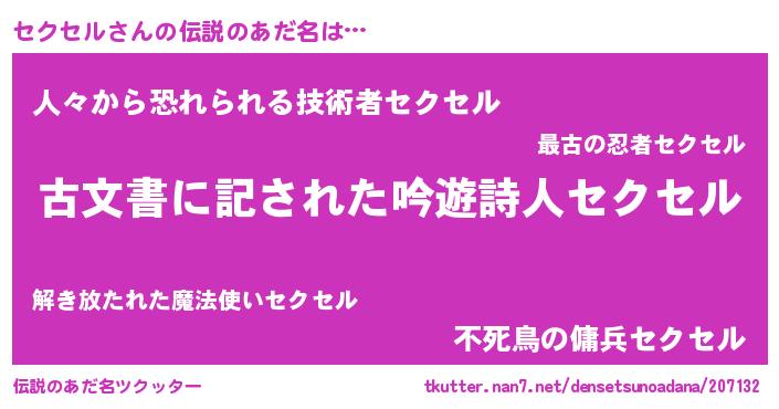 | ヒーロー風カッコイイあだ名 | 『ネオセクセル』『正義の使者セクセル』 |