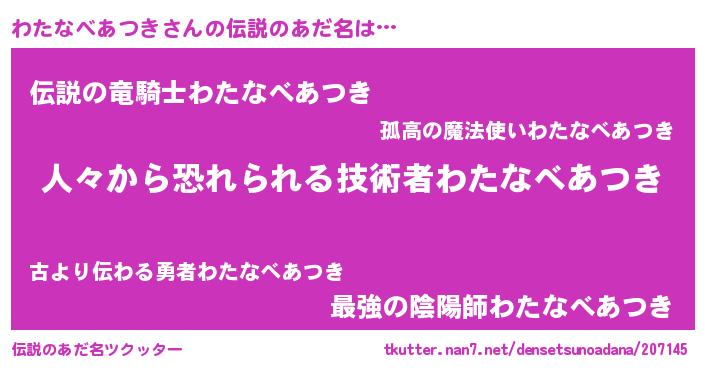 ヒーロー風カッコイイあだ名 | 『正義の使者わたなべあつき』 |