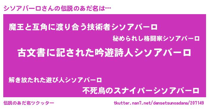 | ヘコむあだ名 | 『シソアバーロ(笑)』『シソにー』 |