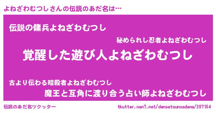 男性向けラノベタイトル風あだ名 | 『よねざわむつしの嫁は女の子じゃないと思った?』 |