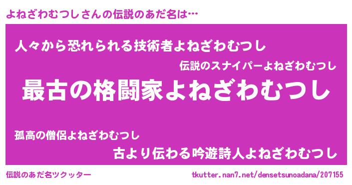 | 意味不明あだ名 | 『住所不定無職よねざわむつし(7歳)』 |