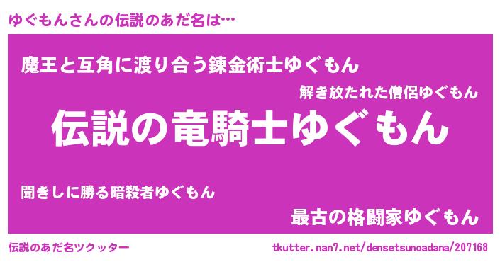 意味不明あだ名 | 『ペロリンゆぐもん』『自称ゆぐもん』 |