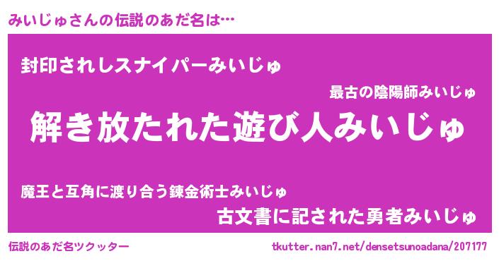男性向けラノベタイトル風あだ名 | 『みいじゅの嫁は女の子じゃないと思った?』 |