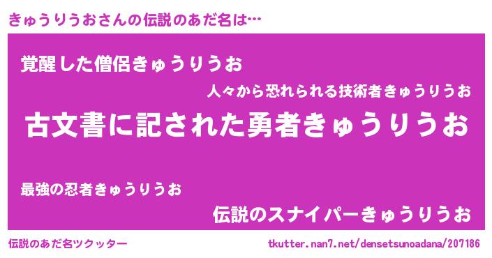 ヘコむあだ名 | 『きゅうりうお(遠い目)』『きゅっ子』 |