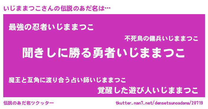| ヒーロー風カッコイイあだ名 | 『ウルトラ戦士イジママツコ』 |