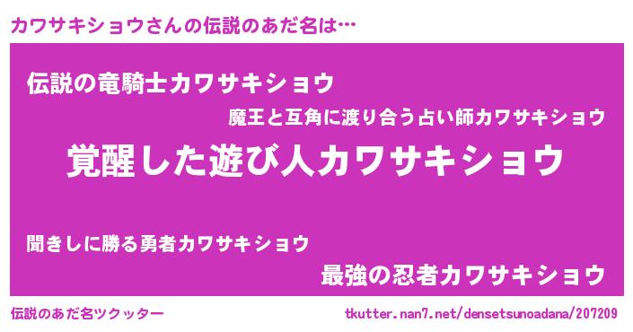 | 意味不明あだ名 | 『とにかく怪しいカワサキショウ』 |