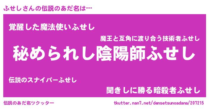| ポケモン風あだ名 | 『フセゴンZ』『フセシダネ』 |