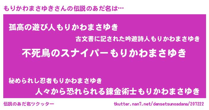 | 意味不明あだ名 | 『もやし科もりかわまさゆき属』 |