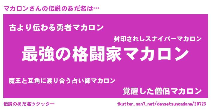 | ヒーロー風カッコイイあだ名 | 『最強戦士マカロン』『ネオマカロン』 |