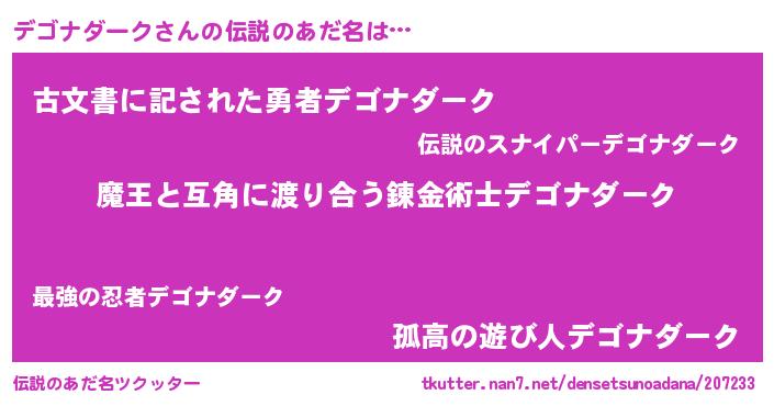 | ヒーロー風カッコイイあだ名 | 『愛の使者デゴナダーク』『炎刃騎士デゴ』 |