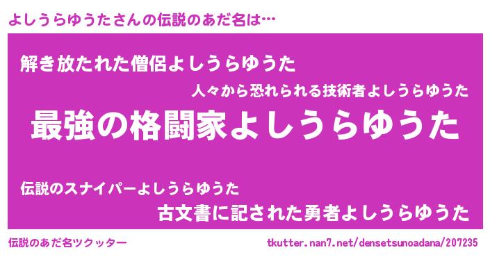 | 肩書あだ名 | 『よしうらゆうた総理大臣』 |