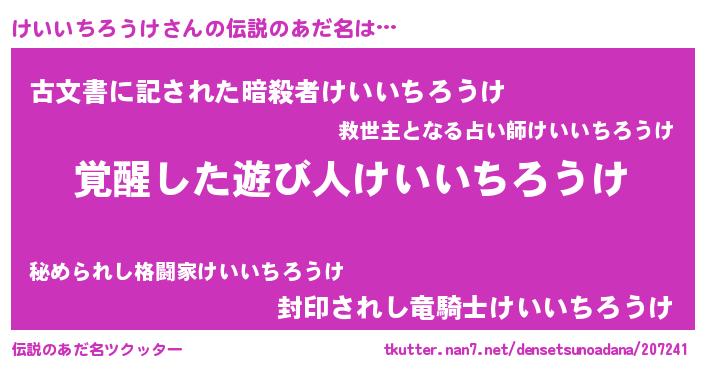 男性向けラノベタイトル風あだ名 | 『この素晴らしい世界にけいいちろうけを!』 |