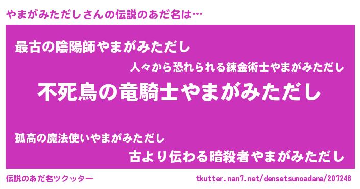 男性向けラノベタイトル風あだ名 | 『やまがみただしの憂鬱』 |