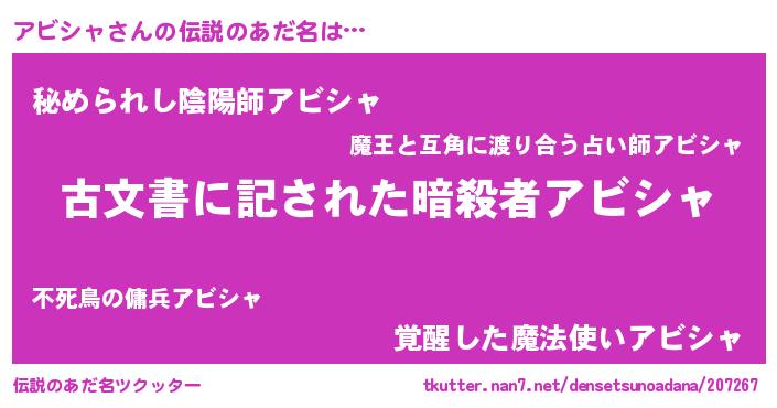 | 意味不明あだ名 | 『永久保存アビシャ』 |