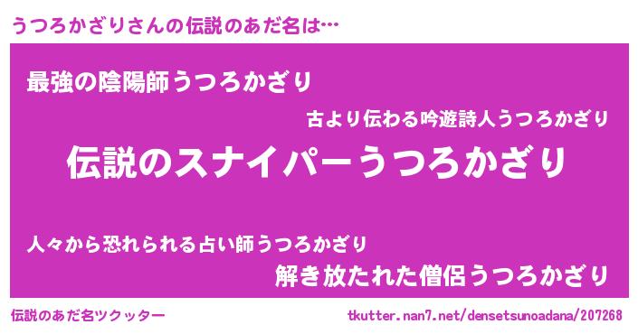 ヒーロー風カッコイイあだ名 | 『スーパーウツロカザリ』『仮面ウツダー』 |