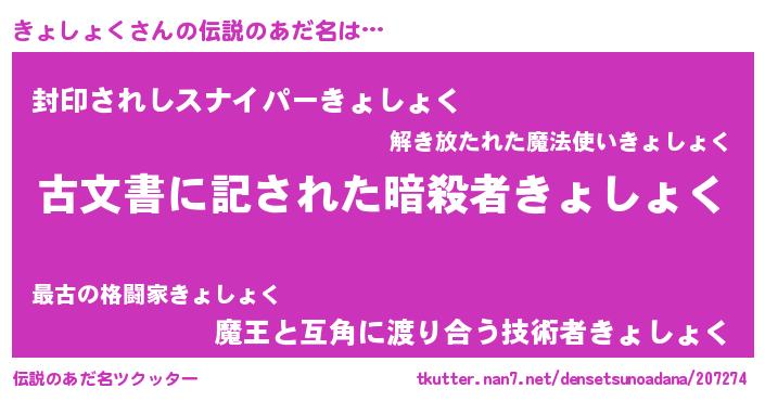 意味不明あだ名 | 『ニラ科きょしょく属』『自称きょしょく』 |