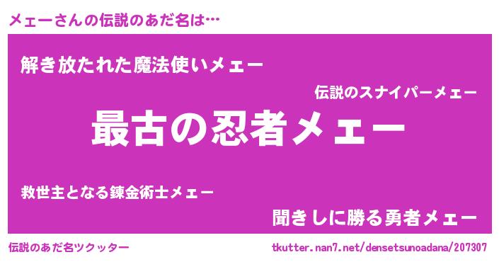 ヒーロー風カッコイイあだ名 | 『ウルトラメェーマン』『天弓騎士メェ』 |