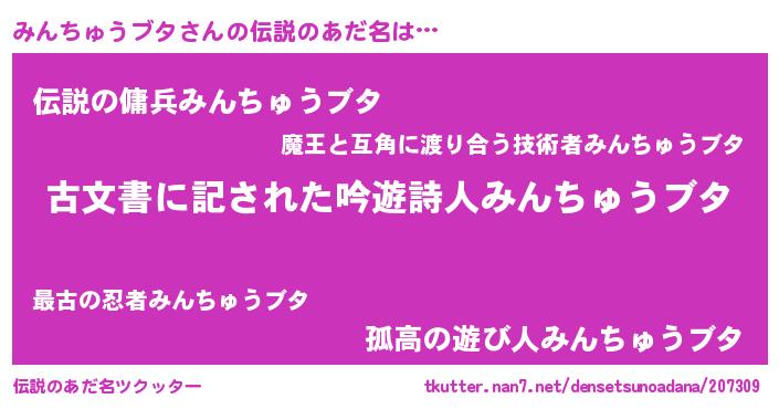 意味不明あだ名 | 『永久保存みんちゅうブタ』 |