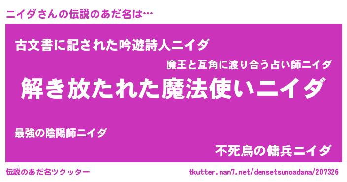 ヒーロー風カッコイイあだ名 | 『魔戒騎士ニイ』『ネオニイダ』 |