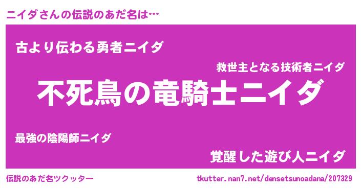 | ファンタジー風あだ名 | 『ニイフェル』『ニイディッシュ』 |