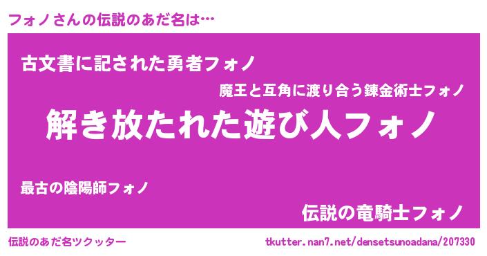 | ヘコむあだ名 | 『フォぷりん』『フォノ(遠い目)』 |