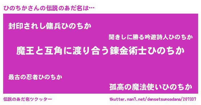 | 女子向けラノベタイトル風あだ名 | 『ひのちか恋絵巻』 |
