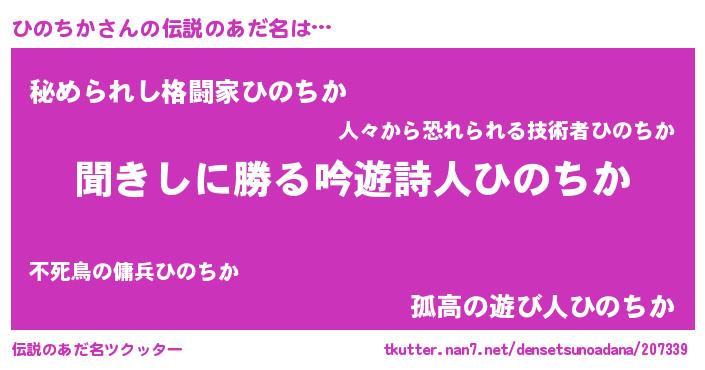 | 意味不明あだ名 | 『永久保存ひのちか』『自称ひのちか』 |