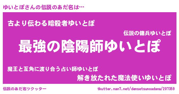 | 胡散臭い通販商品みたいなあだ名 | 『あなたにだけ特別に提供する世界で10本だけ現存している希少なブランデー…その名も「ゆいとぽ」』 |