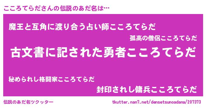 | ヘコむあだ名 | 『こころてらだ(苦笑)』『ここもー』 |