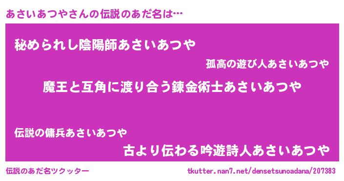 ヒーロー風カッコイイあだ名 | 『友情の使者あさいあつや』 |