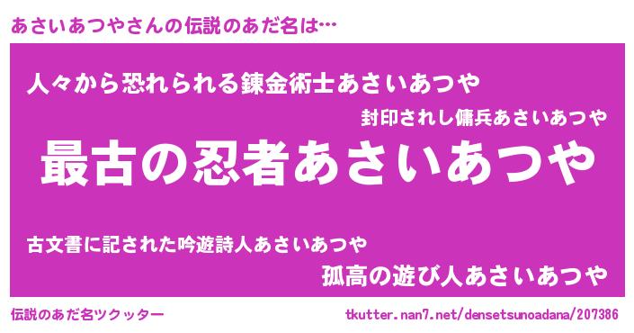ポケモン風あだ名 | 『アサイダネ』『アサセウス』 |