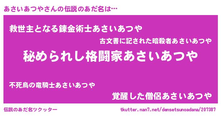 ファンタジー風あだ名 | 『エターナルアサイアツヤー』 |